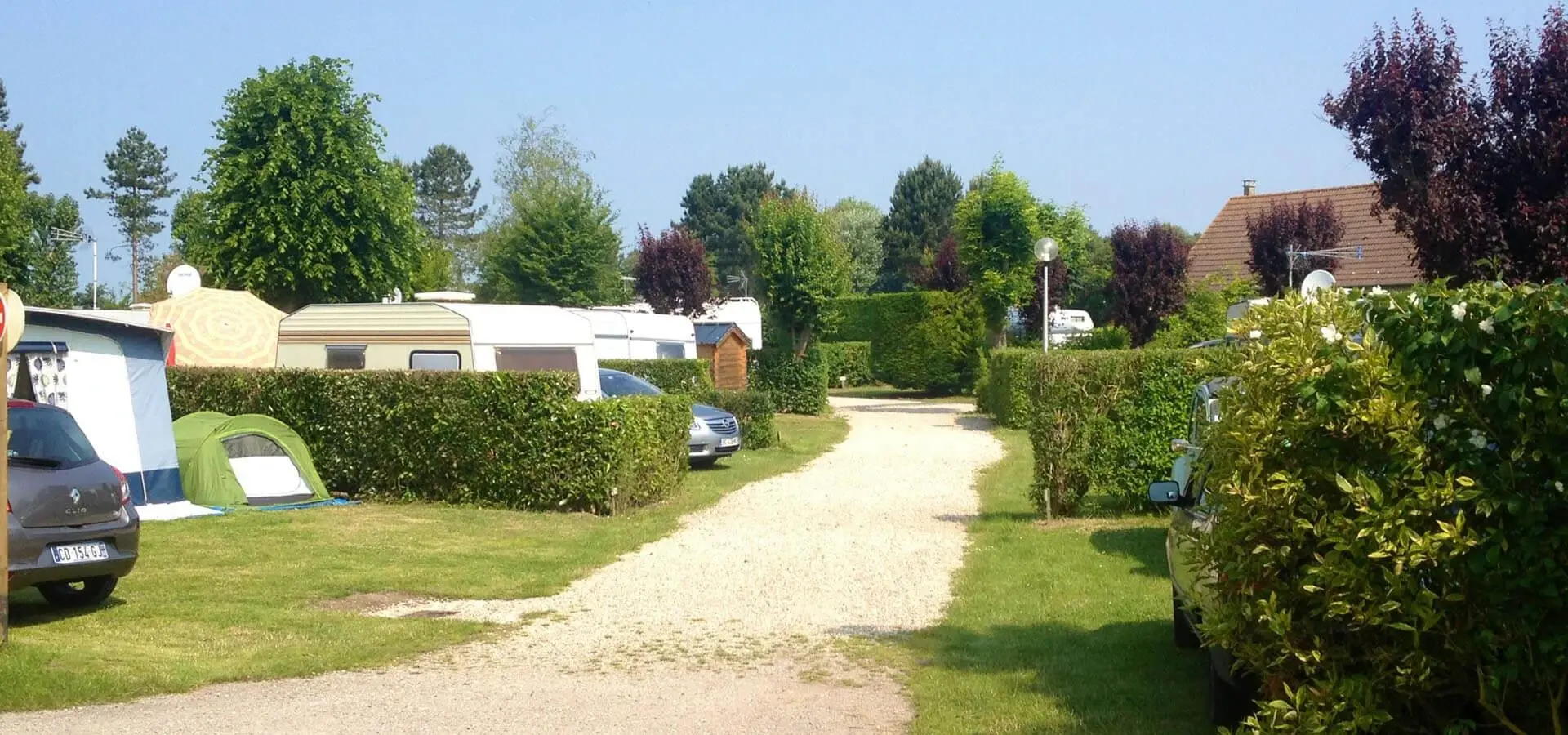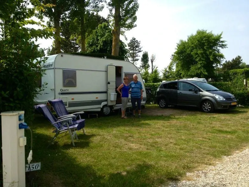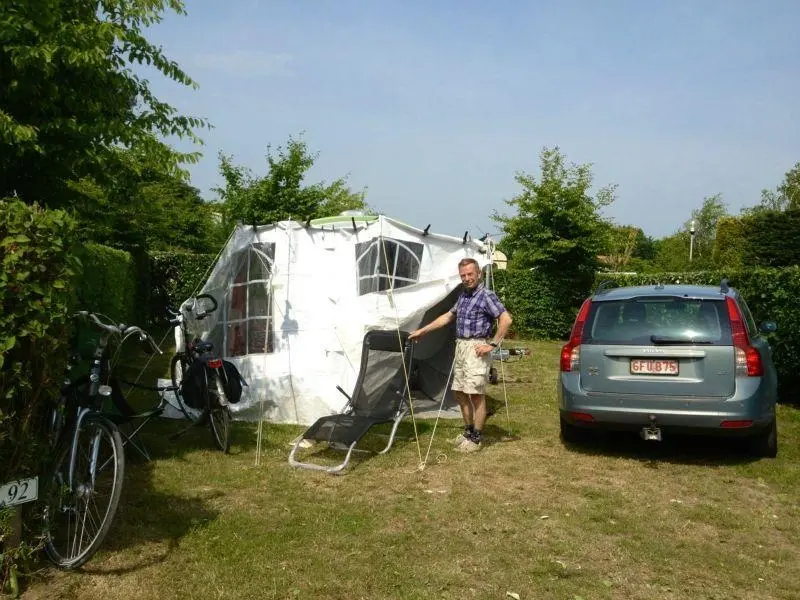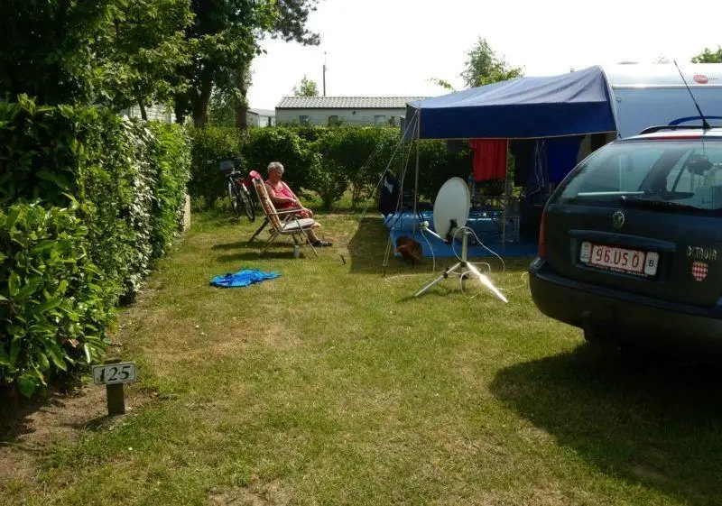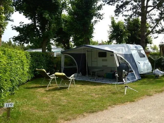Place de camping de 95 m2 environ avec un branchement électrique de 6 ampères.